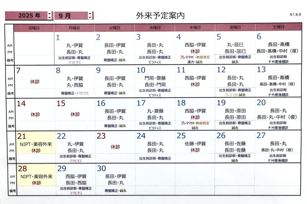 9月外来担当医のお知らせ2025.08.18